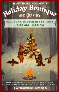 Unique, hand-crafted holiday gifts, wreaths & swags made from natural materials gathered on the grounds. Fresh greens will be available for your own crafting. Stock up on cookies, cakes, and candies packaged and perfect for gifts, or for your own holiday table.
